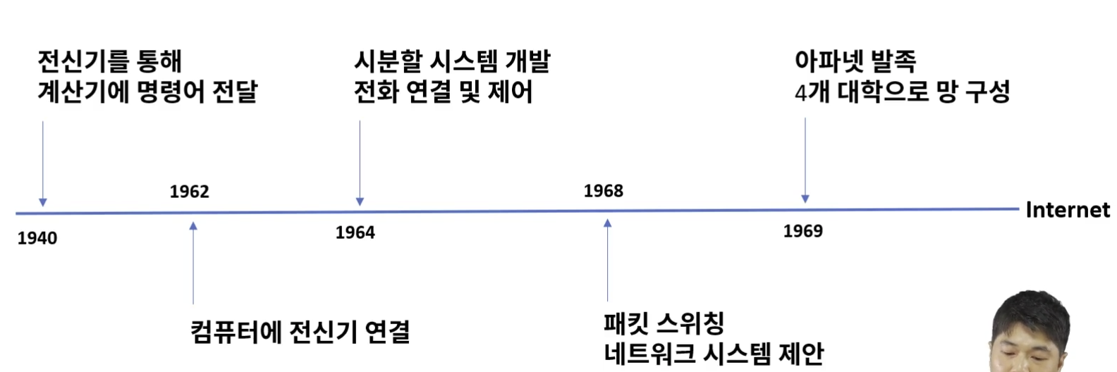 1969년 아파넷을 통한 대학교간 망 구성 -> 인터넷으로 진화