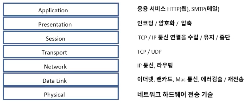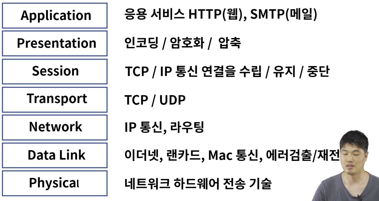 정의 : 네트워크 프로토콜과 통신을 7계층으로 표현