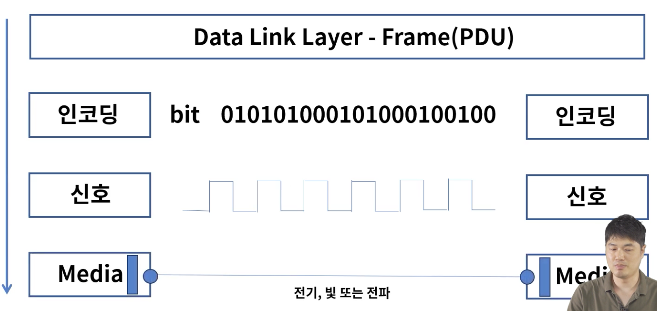 4. 물리계층은 bit를 인코딩하여 2계층(Data link)과 통신한다