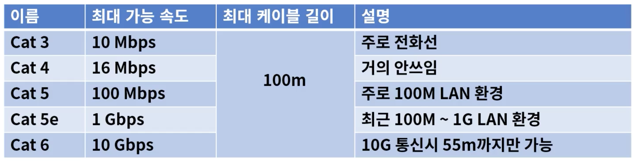 UTP케이블의 전송 가능한 대역폭을 기준으로 분류
