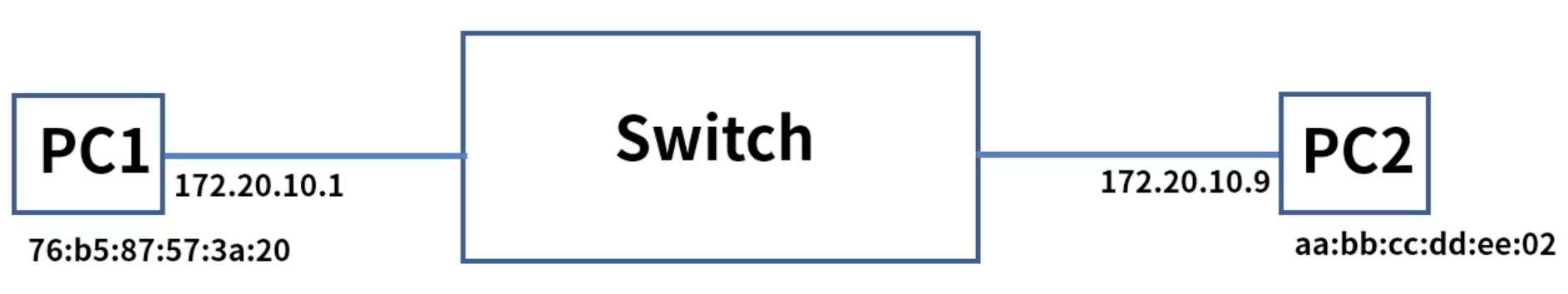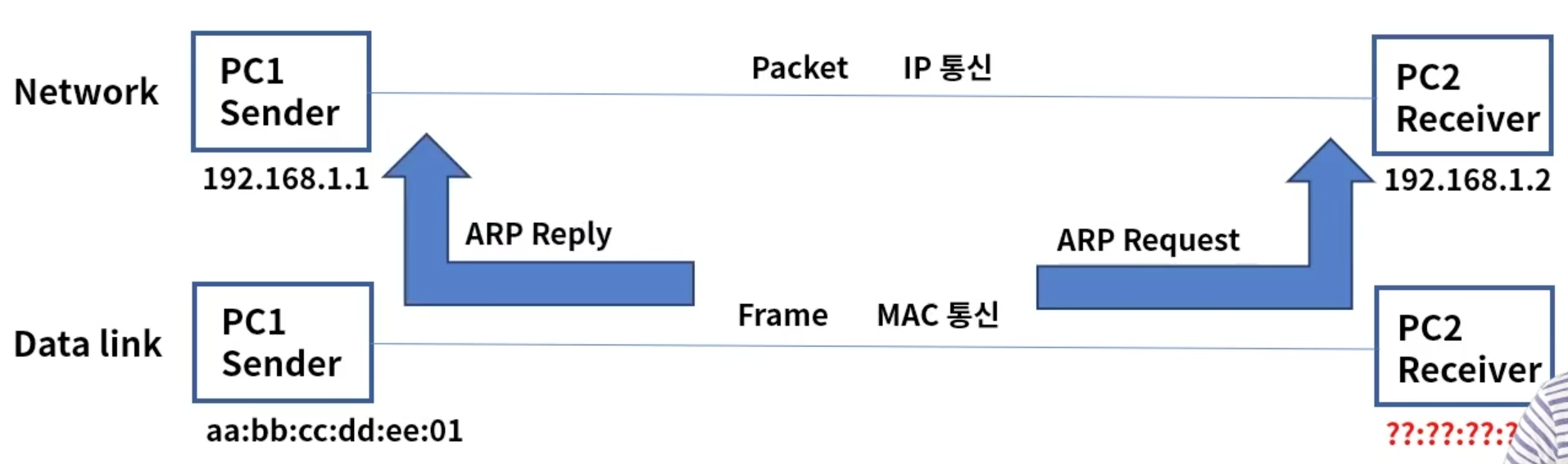 1. PC1은 목적지 aa:bb:cc:dd:ee:02 주소로 프레임 전달