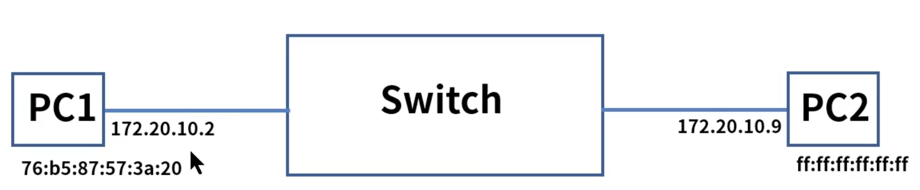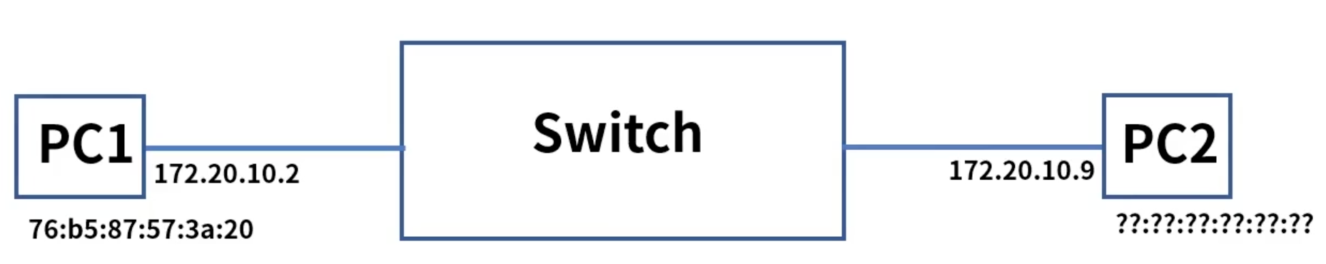1. PC1은 동일 네트워크 대역인 목적지 IP 172.20.10.9로 패킷 전송을 시도하기위해