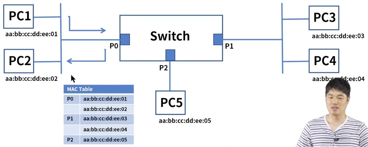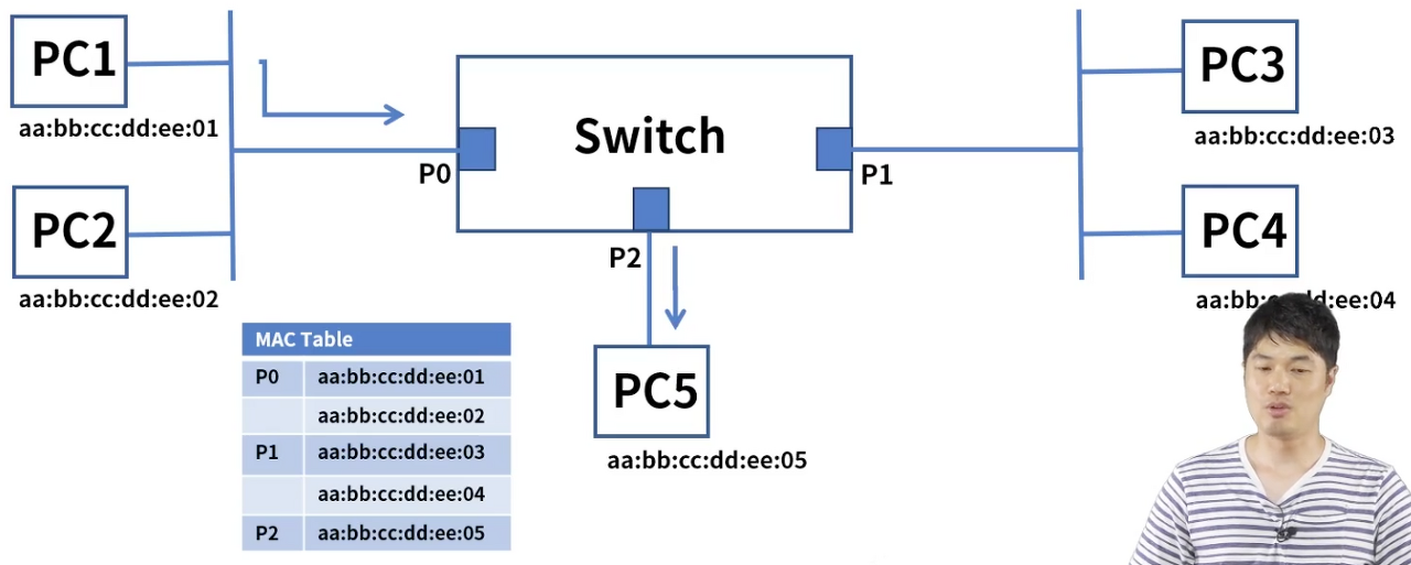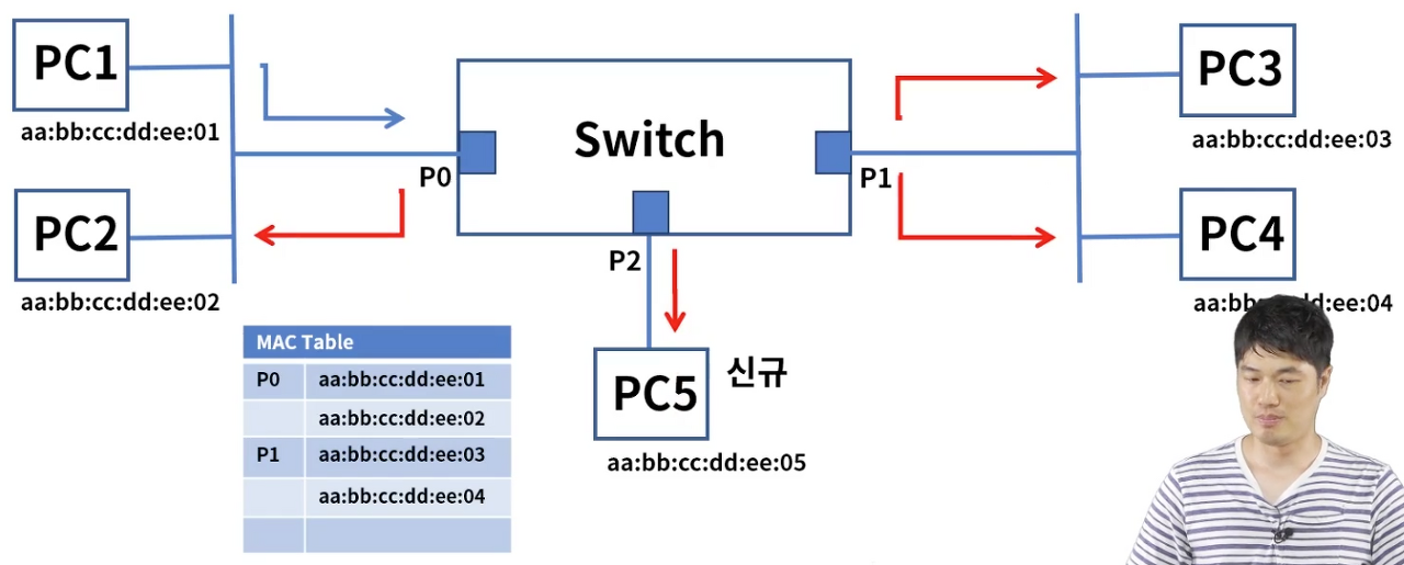 (그럼 스위치는 저번에 배웠던 애잖아? 어라, 포트2에 PC5가 물려있네)