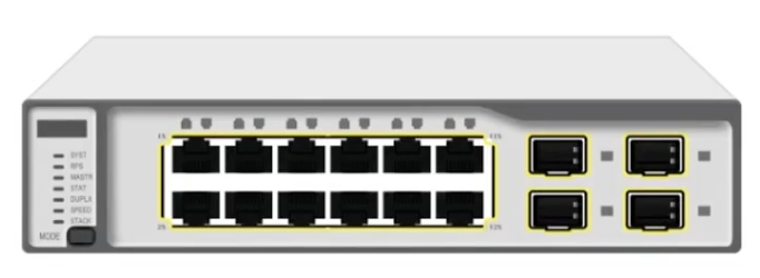 UTP를 꽂을 수 있는 이러한 이더넷 포트도 있고요, 오른쪽에는 속도가 빠른 광 SFP기가의 트렌시퍼를 꽂을 수 있는 이러한 노즐이 있는 장비를 스위치라고 합니다