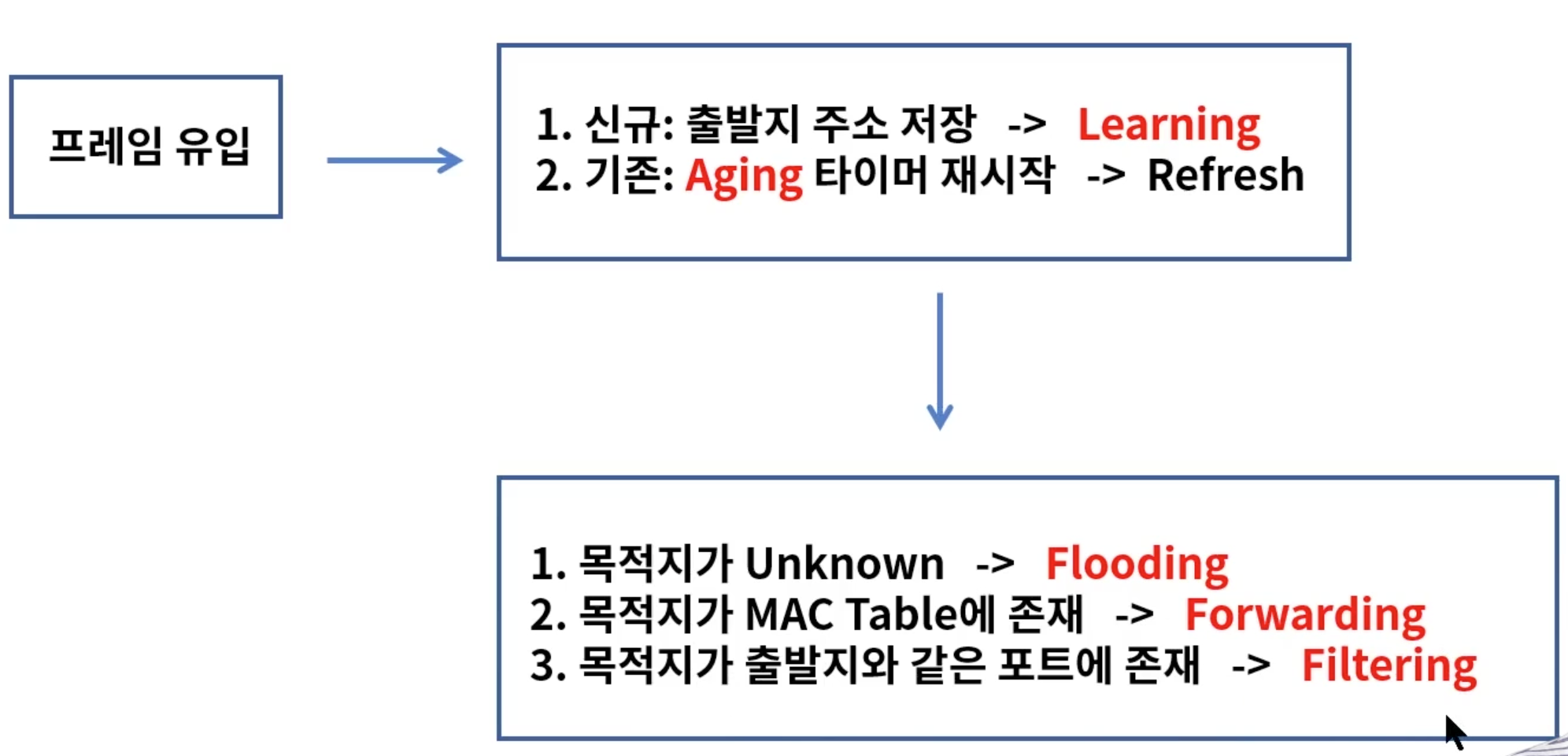 1) 목적지를 모르는 경우면 Flooding해줘서 다시 Learning을 해줘야되겠죠