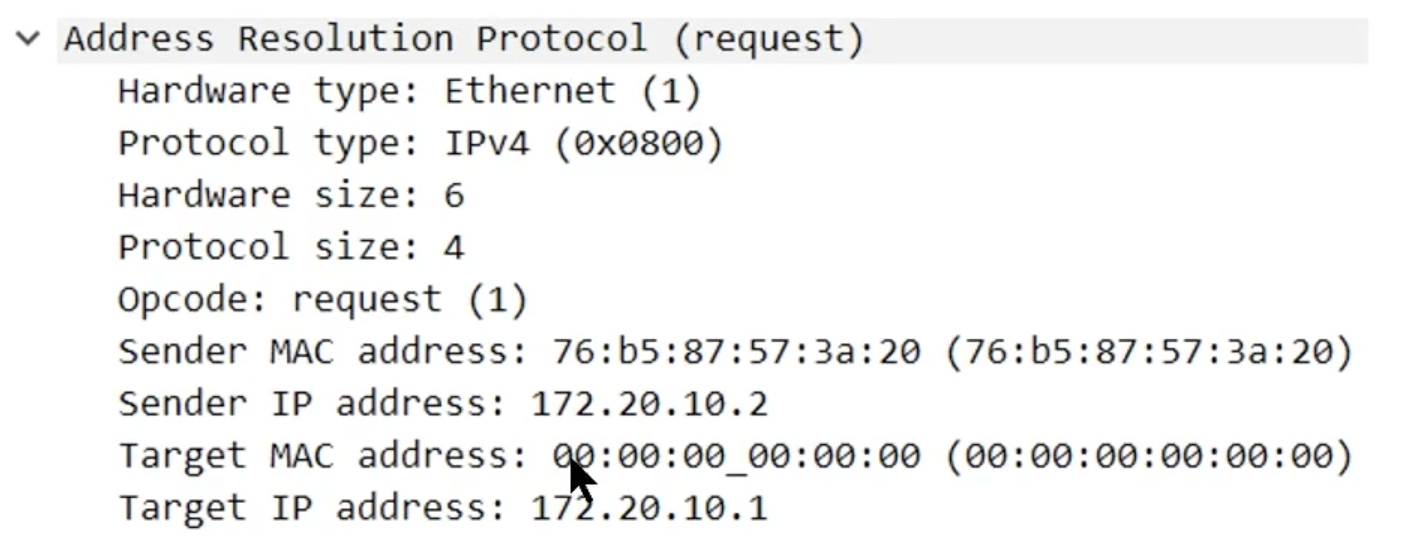 172.20.10.9가 누구에요? 말해라 172.20.10.2한테(172.20.10.9의 MAC address가 뭔지 요청한거에요)