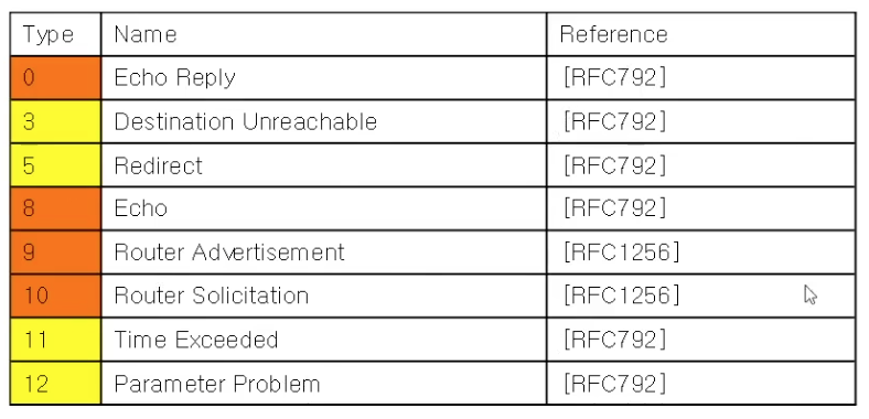 Type : ICMP 메시지 종류