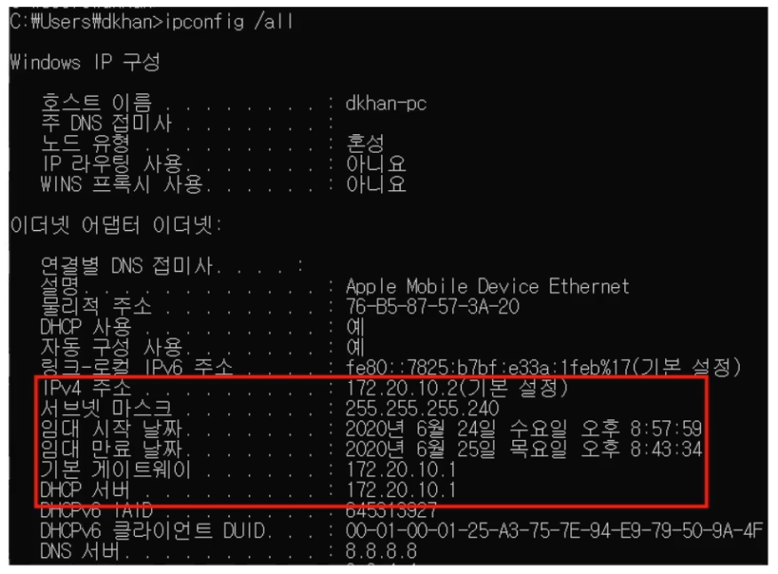 DHCP 자동 할당 정보