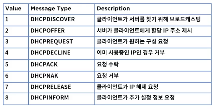 DHCP 메시지 타입