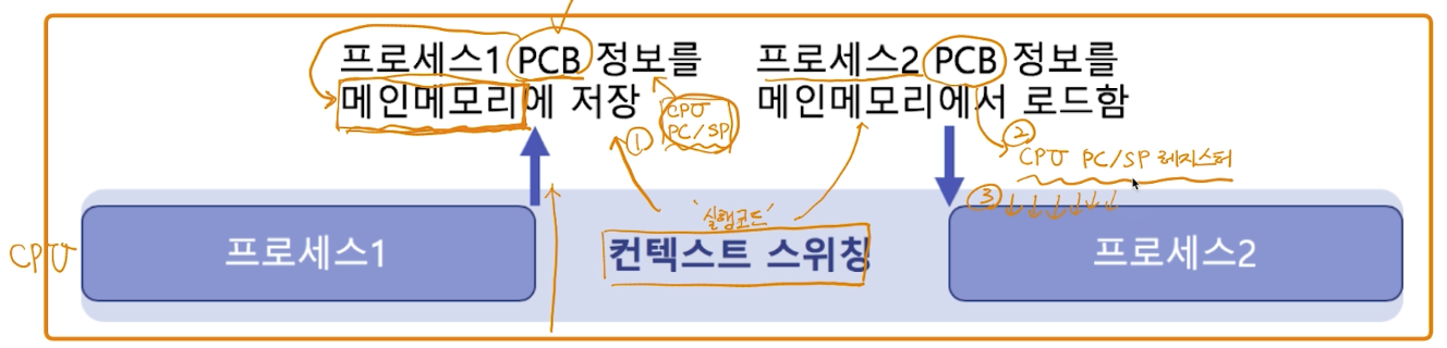 프로세스 PCB정보에 해당 CPU 레지스터 정보를 저장한다.