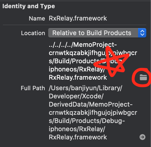 예를 들면 finder에서 RxRelay.framework를 검색하면 get info에서 full path를 알 수 있는데