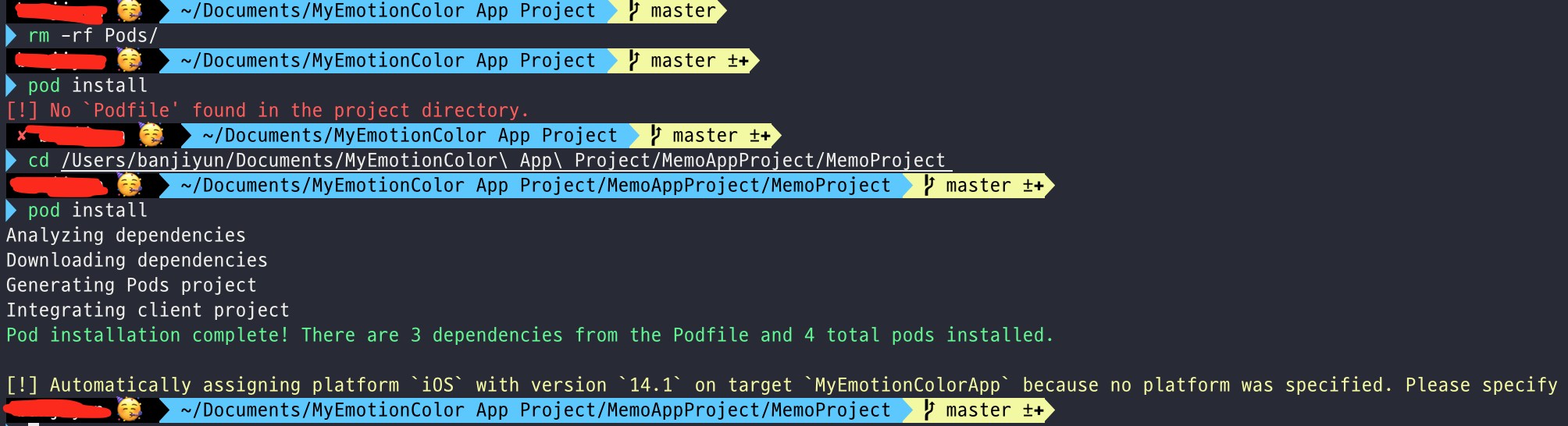 (pod install하기 전의 경로는 Podfile을 품고 있는 바로 전 폴더로 설정해야합니다. 저는 깜박해서 에러가..)