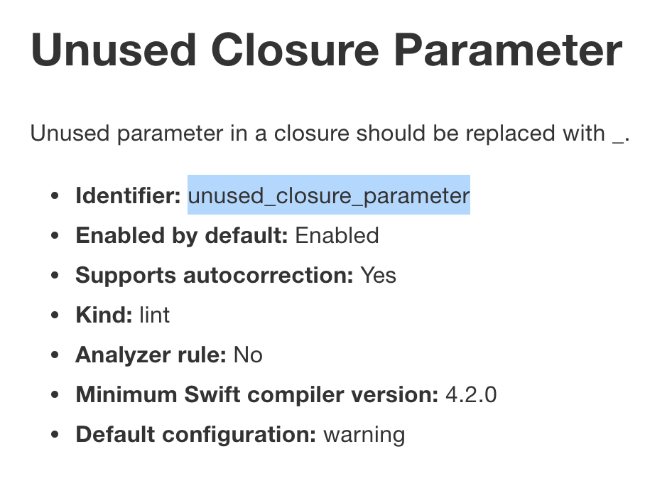 그리고 프로젝트에 있는 .swiftlint.yml파일을 열고 disabled_rules:아래에 아래와같은 형식으로 identifier를 넣어준 뒤 buil해주세요