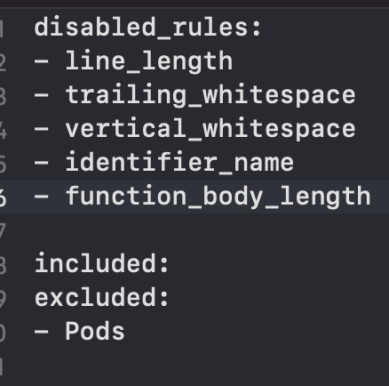 저는 .swiftlint.yml파일 안에 아래와 같이 입력해줬어요.