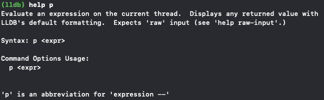 po 및 p명령은 모두 디버거가 생성한 범위에서 코드를 실행한다는것을 의미하는 expression의 약어입니다.