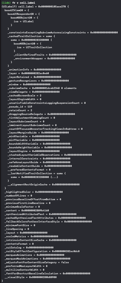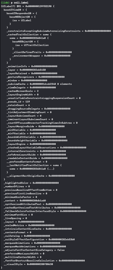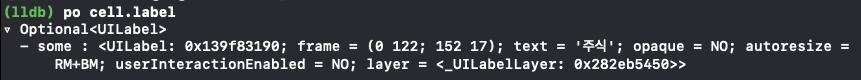 po명령어의 경우, UILabelClass는 console에 인쇄되는 문자열을 반환하는 디버그 설명 메서드를 실행합니다.