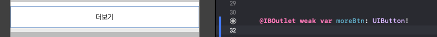 더보기 버튼을 컨트롤 하기 위해 Outlet변수 moreBtn을 추가합니다.