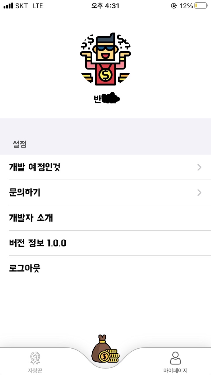 문제는 애플로 로그인했을때 문제가 발생했어요. 애플로 로그인하고 설정창을 봤는데 "반나비" 이름이 안보이고