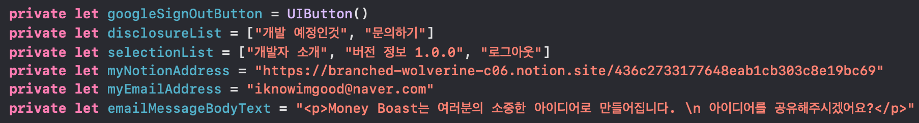 ex. private 이용시 아래의 변수들이 SettingViewController에서만 이용되는걸 파악할 수 있고, 성능도 높아짐