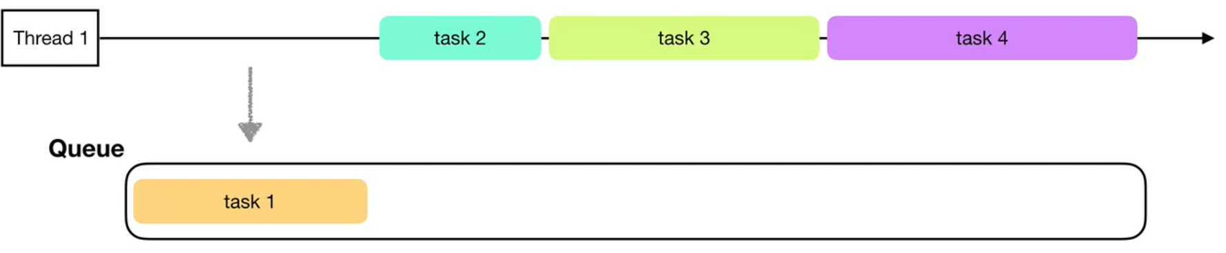 정답은 작업(Task)을 "대기행렬"에 보내기만 하면 됩니다.