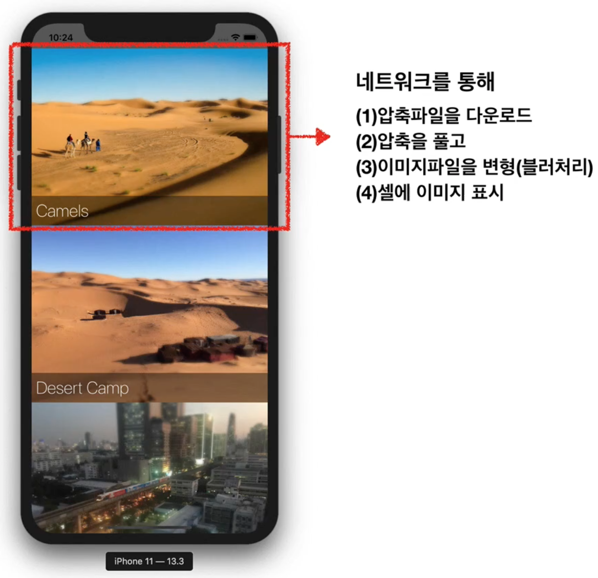 아래의 tableView의 경우 이미지 하나하나를 네트워크를 통해서 다운한건데 (아래 (1)(2)(3)(4)참고)