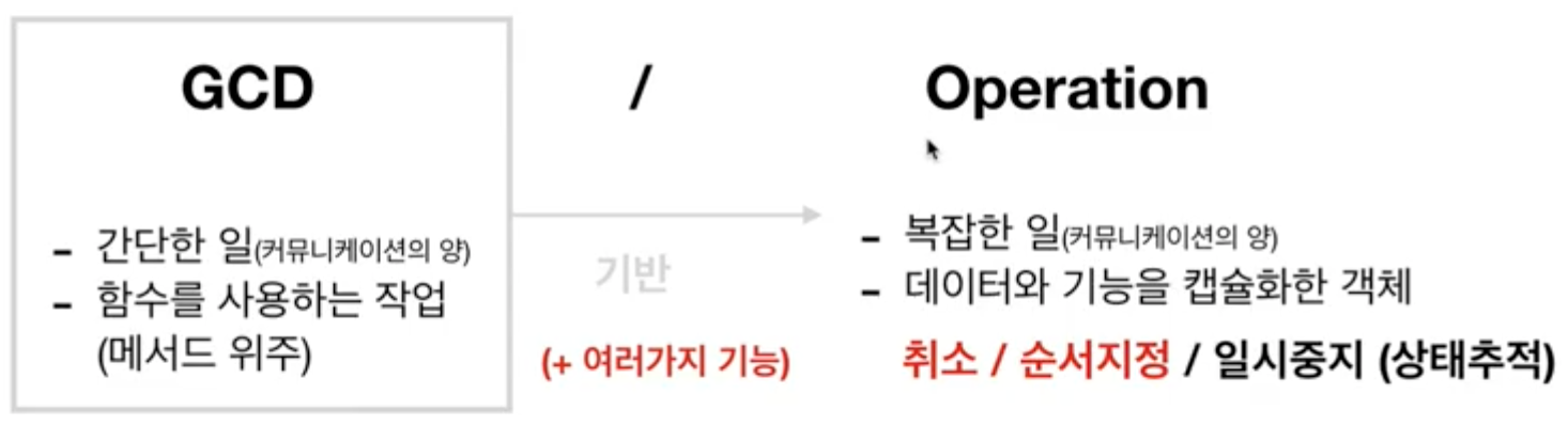 Operation큐는 보다 복잡한 일에서 사용합니다. 정확하게 말하면 데이터나 기능을 캡슐화한 객체의 개념인데...