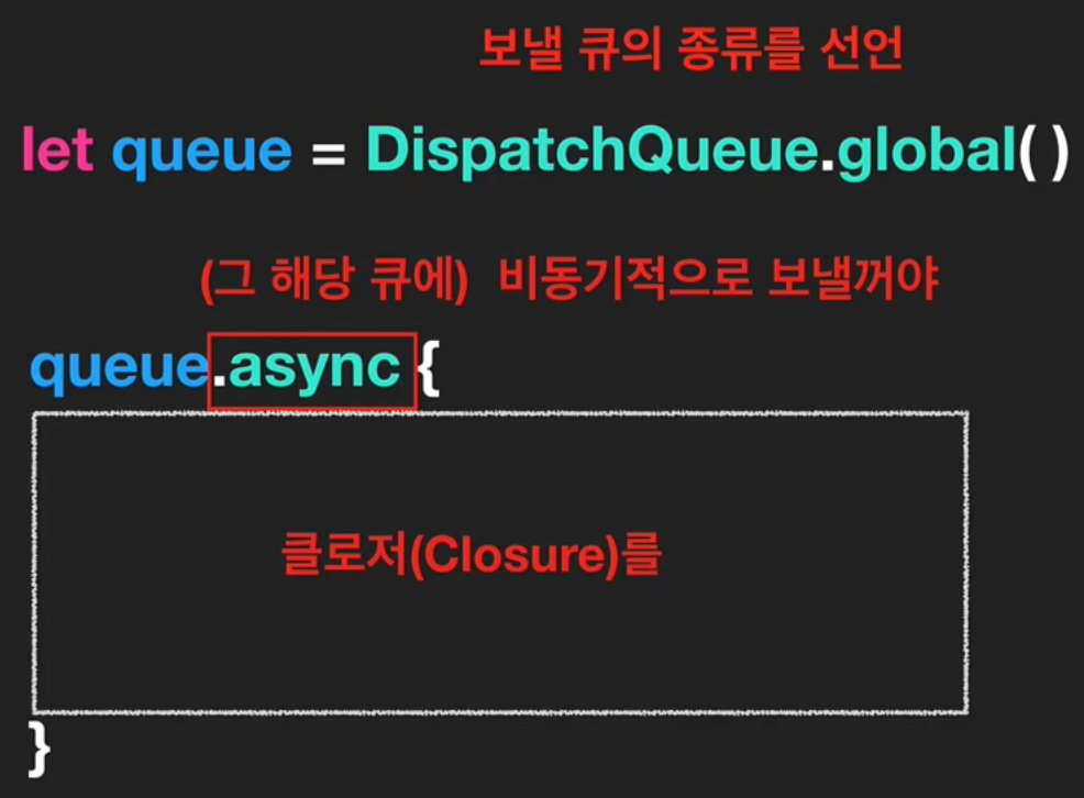 아하. 그럼 전체적으로 보면 "클로져 안에 있는 작업을 globalqueue에 비동기적으로 보낼거야"가 될 수 있겠네요.