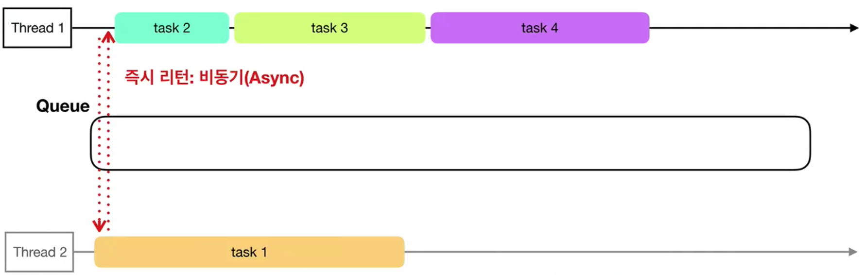 비동기는 일반적으로 메인스레드에서 작업을 다른 스레드로 분산처리시키고 그 작업이 끝나길 기다리지않고 다음 작업을 생성하죠.
