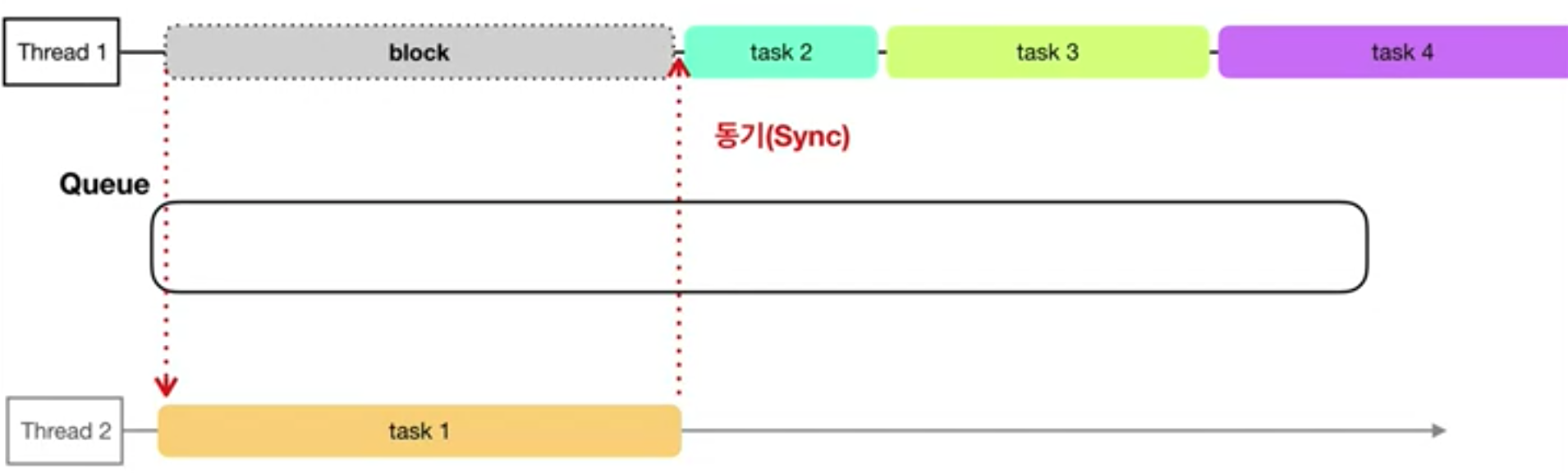 동시는 대기열로 보내진 작업이 여러개의 스레드로 갈것인지 한개의 스레드로 갈것인지에 대해 정하는것이 시작이기 때문에
