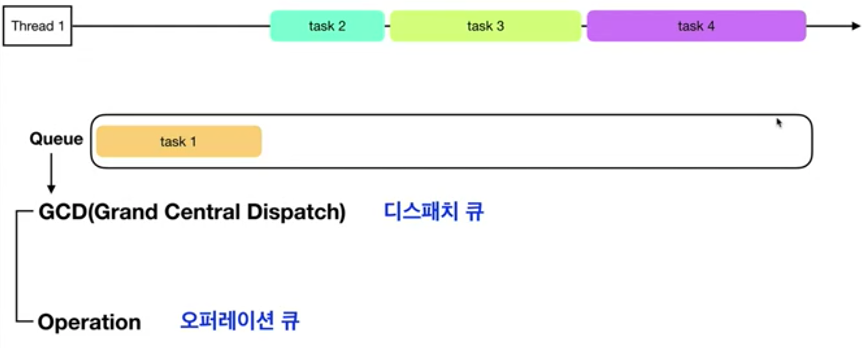 우리는 앞선 포스팅들에서 큐를 두가지 배웠어요. 디스패치큐, 오퍼레이션큐 맞죵? (오퍼레이션 큐는 좀 더 뒤에 가서 배울거에용)
