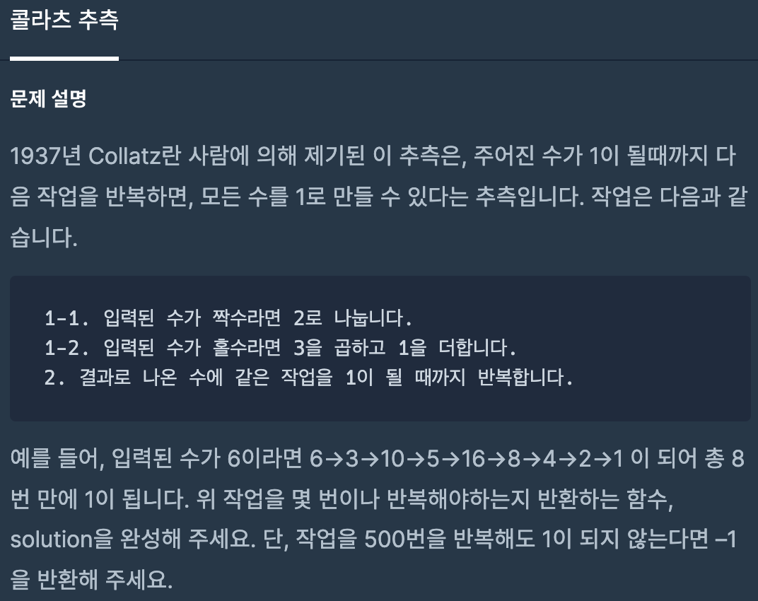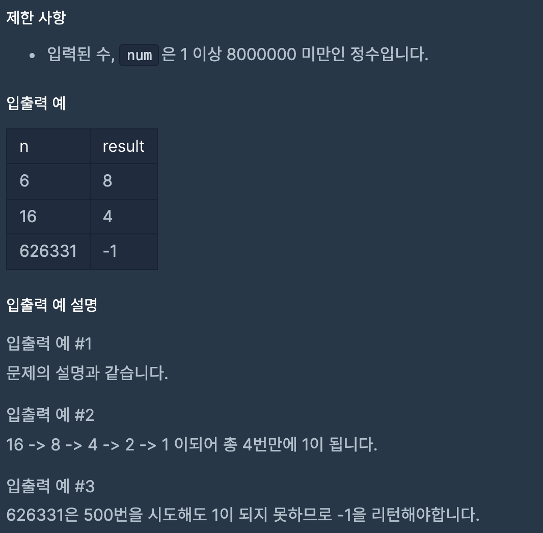 이 문제의 "단, 작업을 500번을 반복해도 1이 되지 않는다면 –1을 반환해 주세요."는