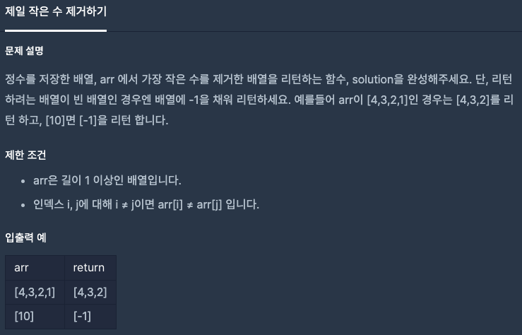 프로그래머스 1단계) 제일 작은 수 제거하기