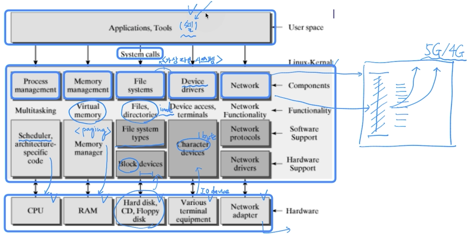 - 리눅스 커널(운영체제) + 시스템 프로그램(쉘) + 응용 프로그램