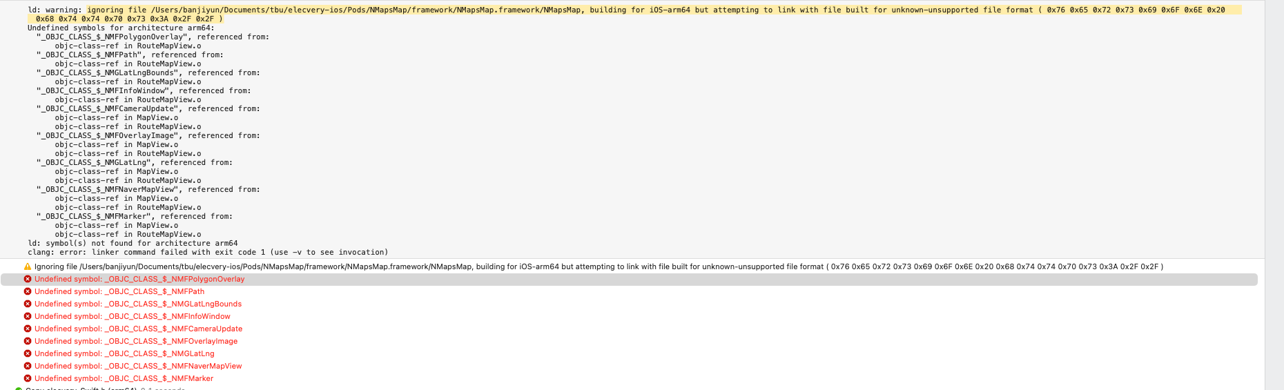 Undefined symbol: _OBJC_CLASS_$_NMFPolygonOverlay 어쩌구 에러로 고통받을때