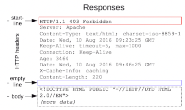 HTTP response의 시작줄은 상태줄이라고 불리며 보통 프로토콜 버전, 상태코드(요청의 성공여부), 상태텍스트(짧고 간결하게 상태 코드에 대한 설명을 남김)와 같은 정보를 남깁니다