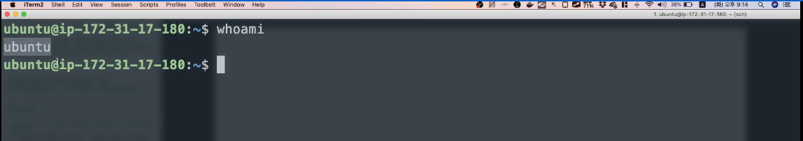 whoami를 입력하고 enter를 치면 ubuntu가 나오네요