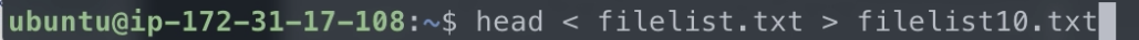 head filelist.txt를 입력하면 앞의 10줄만 출력되는 모습도 보이는데요