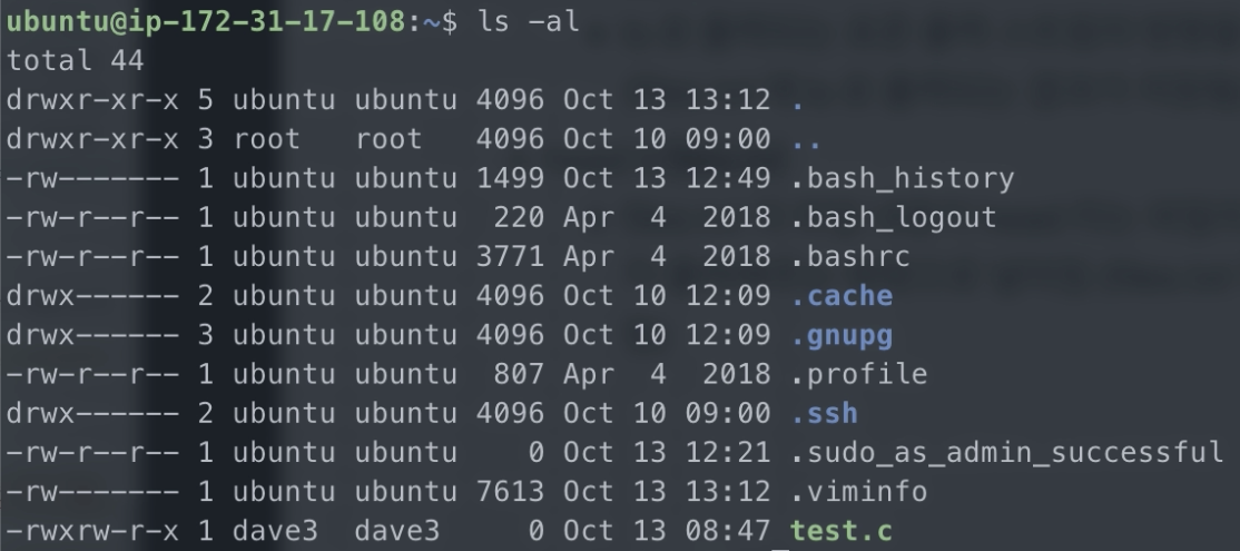 직접 한번해볼게요 ls -al을 입력해봤어요