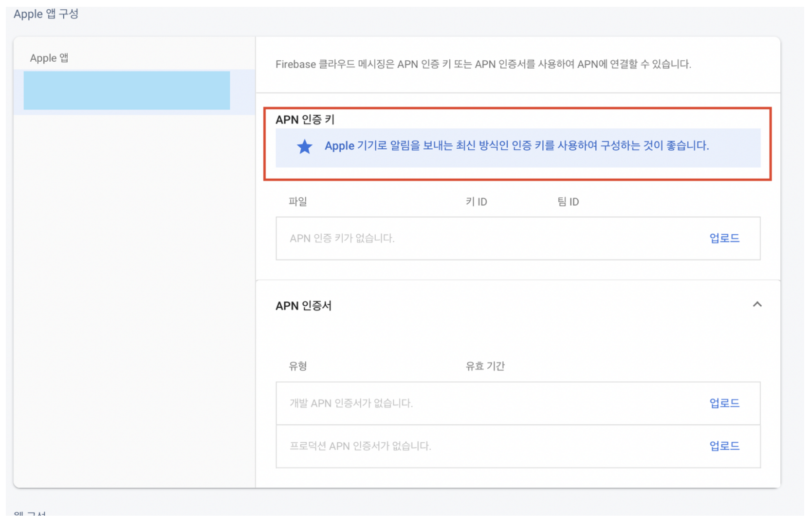 - apple 기기로 알림을 보내려면 APNS는 필수이며 FCM과 같이 사용하는 경우 Apple develop에서 key를 등록하고 APN인증키를 받아서 FCM 설정에 넣어줘야합니다.
