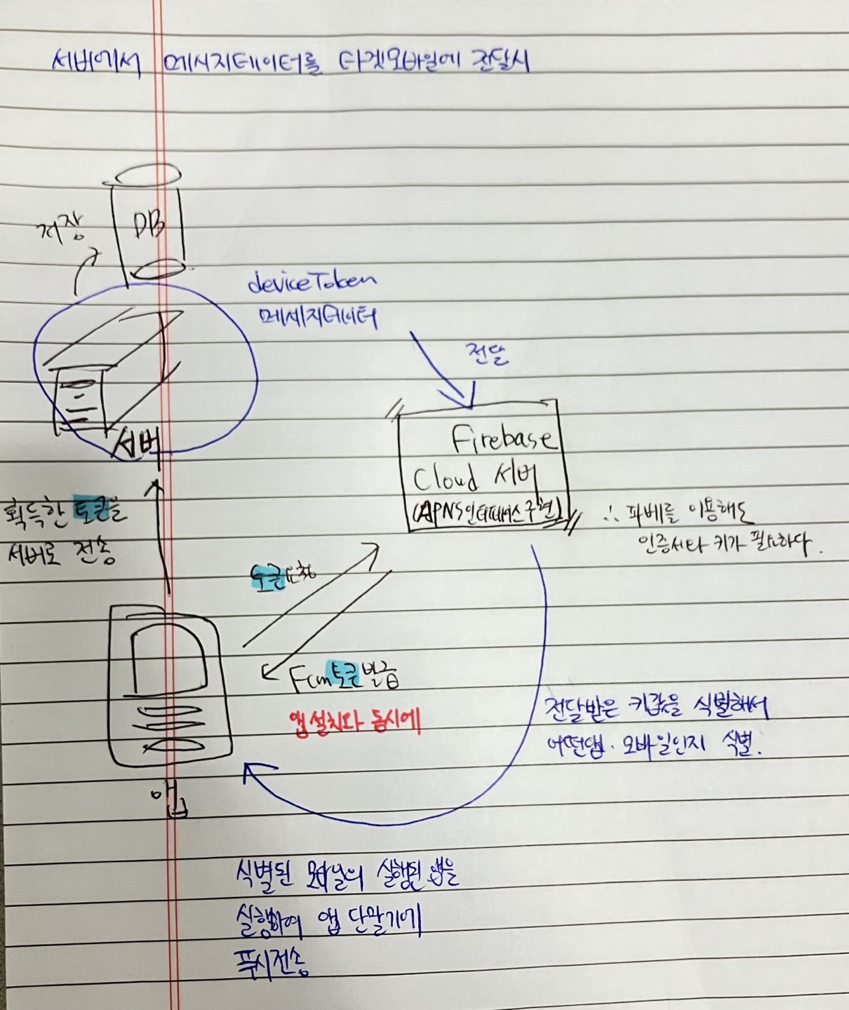 - FCM을 이용중이라면 이 토큰값은 구글로 보내고, 구글에서 반환하는 키를 기준으로 AOS, IOS 동시에 푸시를 보냄.