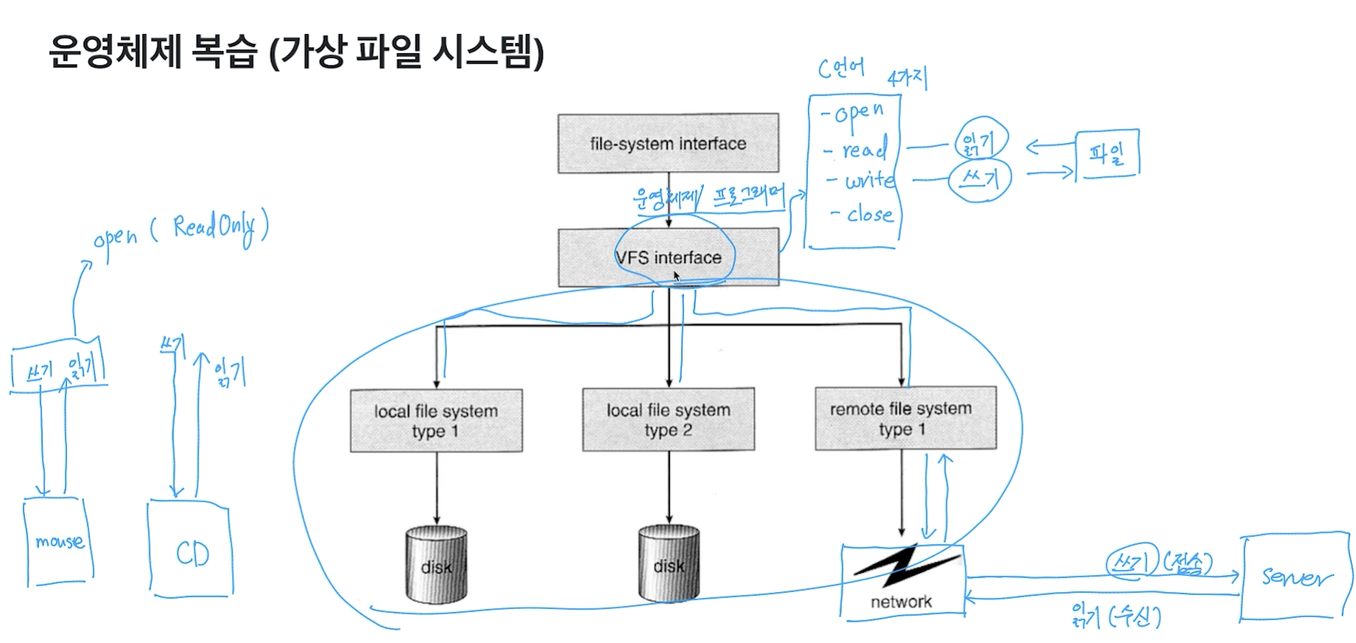 2) 마우스, 키보드와 같은 모든 디바이스 관련된 기술도 파일과 같이 다루어짐