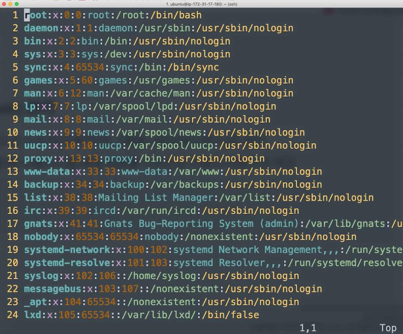 정리해보면 사용자명(아이디), 패스워드, 사용자ID(UID), 그룹ID(GID), 사용자정보, 홈디렉토리, 쉘환경 정보를 볼 수 있다는 것입니다!