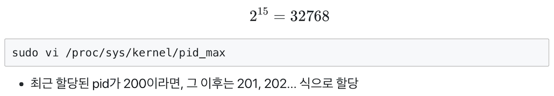 만일 pid값이 32768을 넘어가게 되면 그제서야 맨 처음으로 넘어가서 1부터 시작하여
