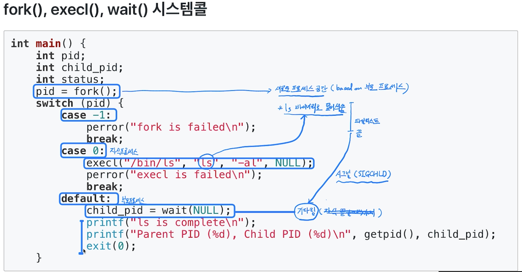 3. wait()함수를 사용해서 부모프로세스가 자식프로세스가 끝날때까지 기다릴 수 있음.