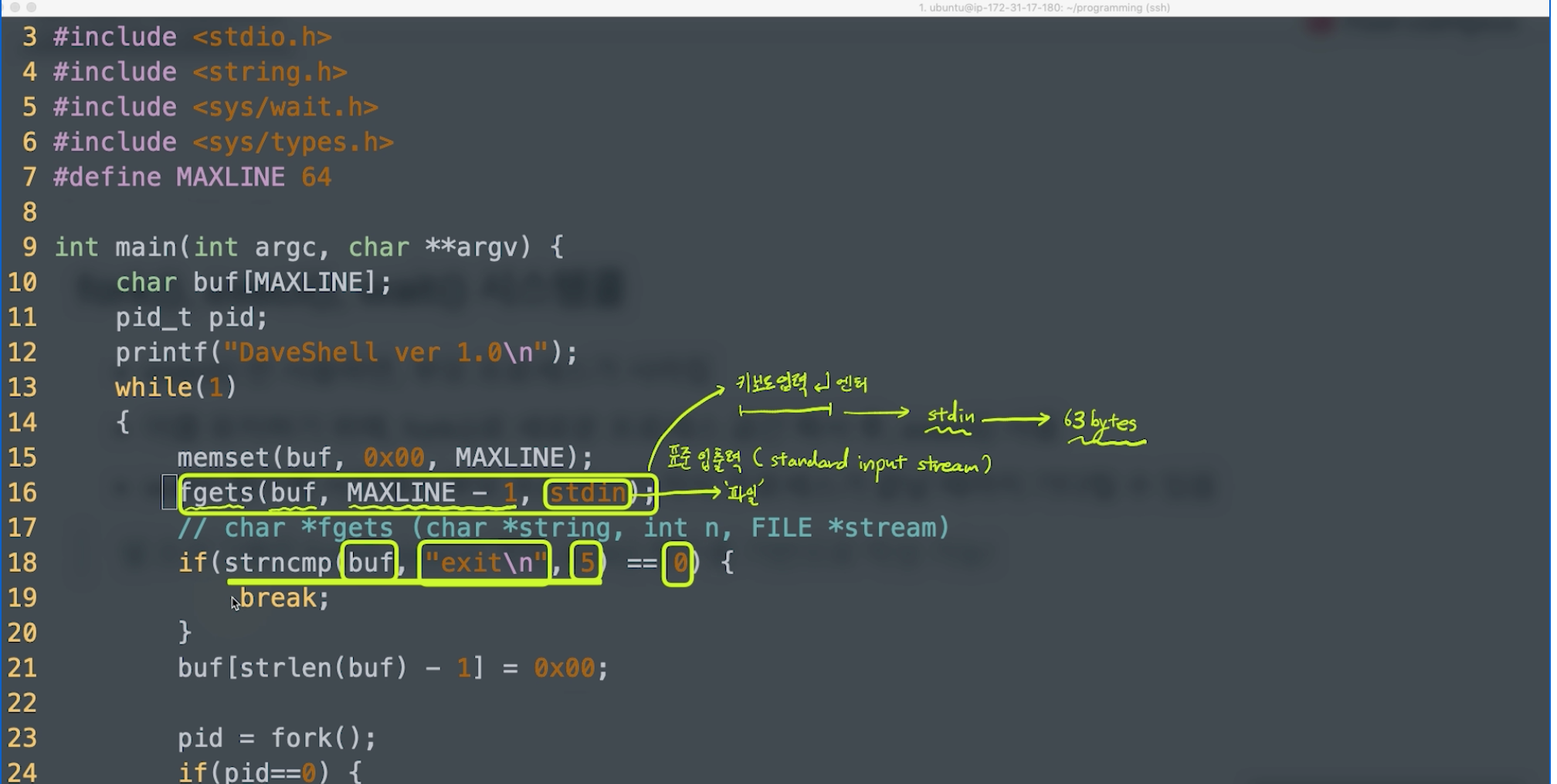 오늘은 프로세스 생성과 나만의 쉘만들기 부분을 실습해보겠습니다