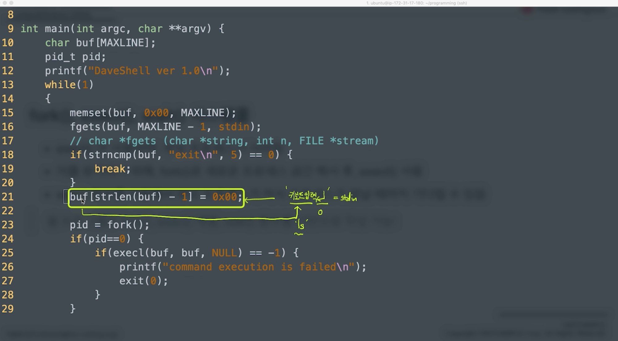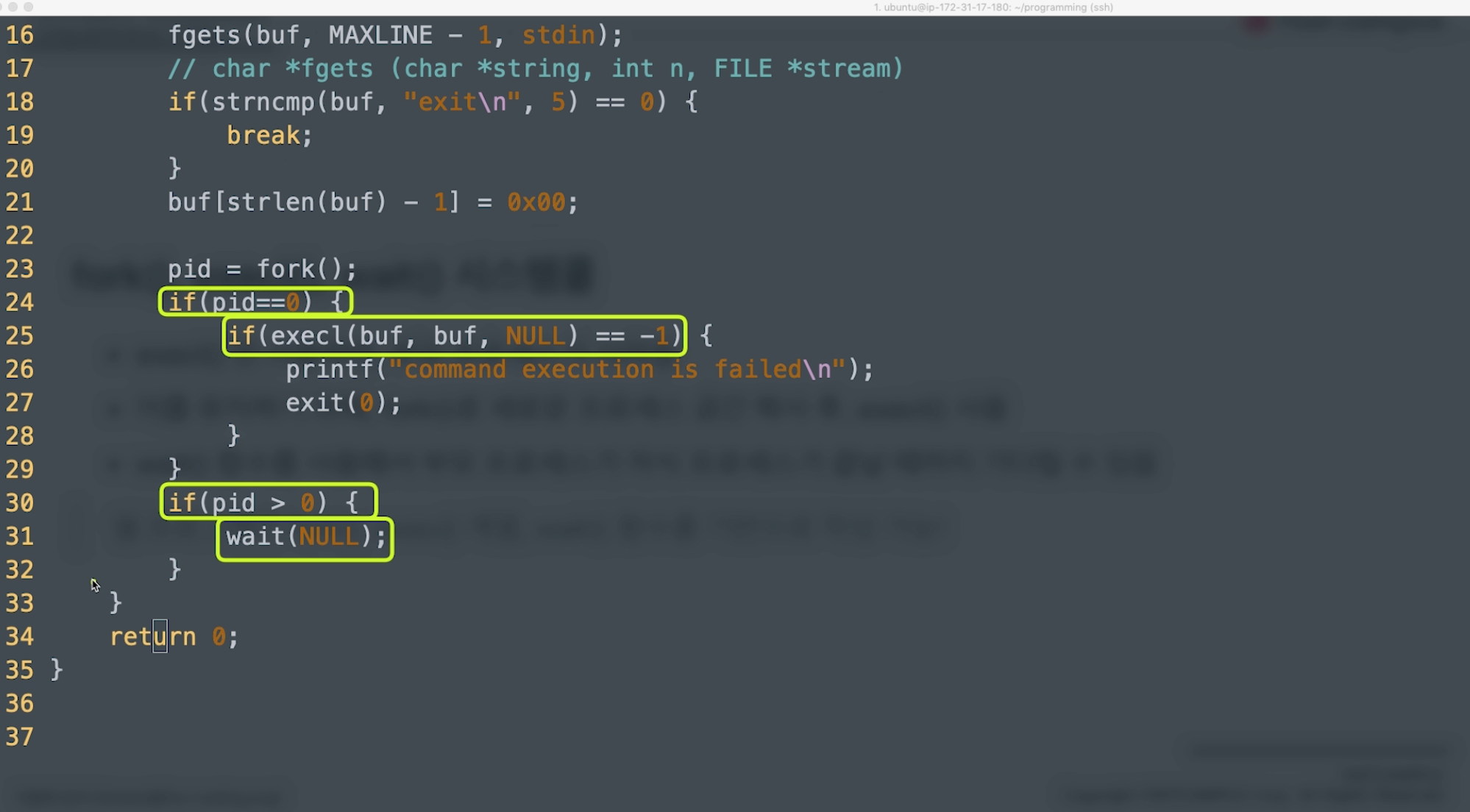 * 쉘 프로그램은 fork(), exec() 계열, wait()함수를 기반으로 작성 가능!