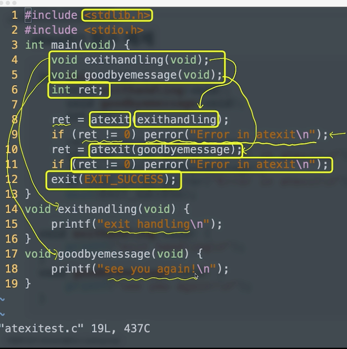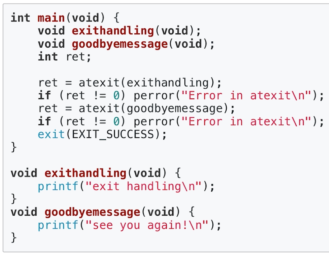- 프로세스 종료 시 실행될 함수를 등록하기 위해 사용