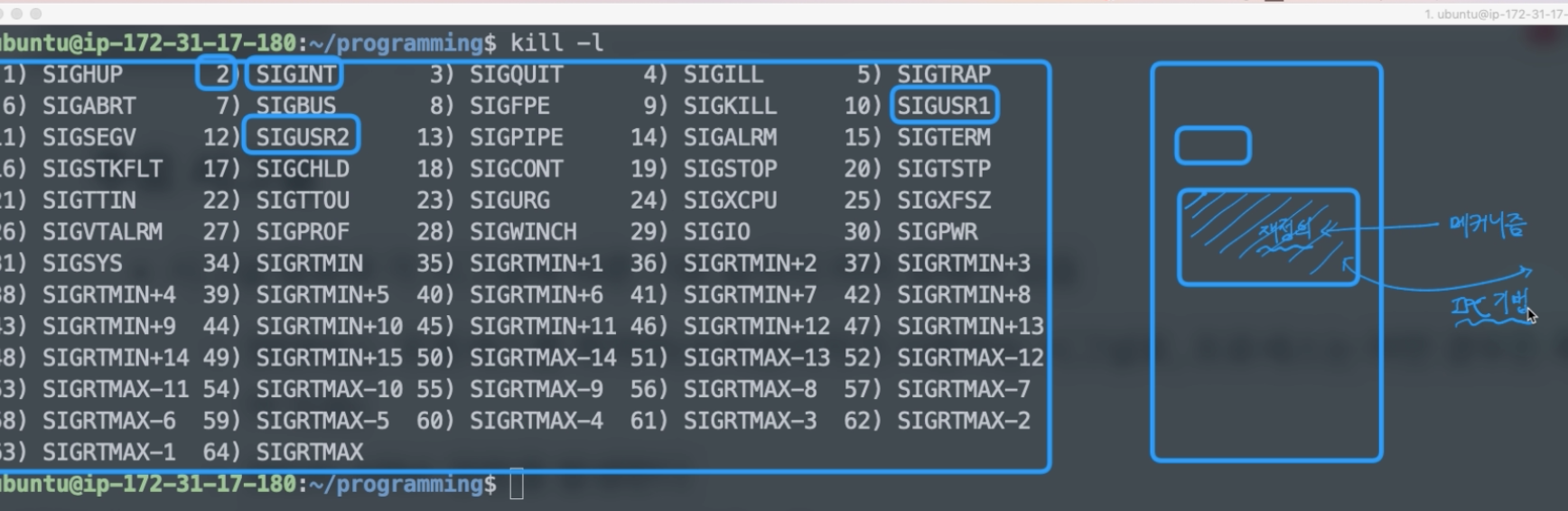 시그널은 운영체제에서 IPC기법 중의 하나로도 쓰일수도 있다고 말씀드렸었습니다.
