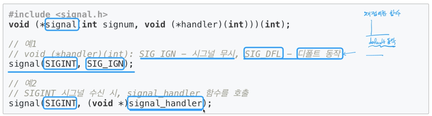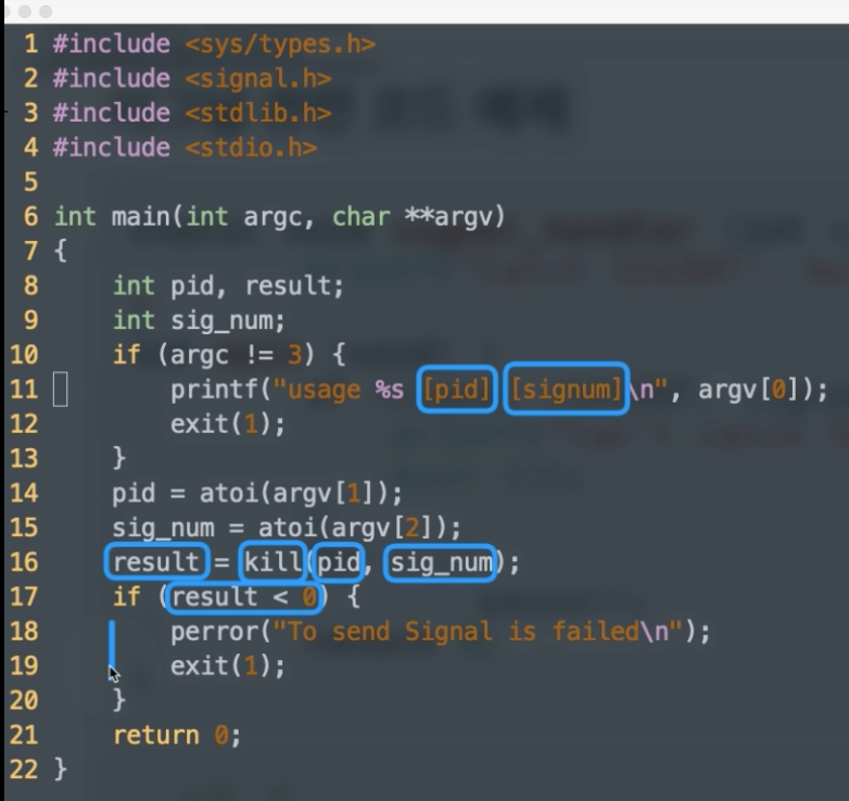 그럼 시그널 시스템콜 예시 코드를 살펴보겠습니다