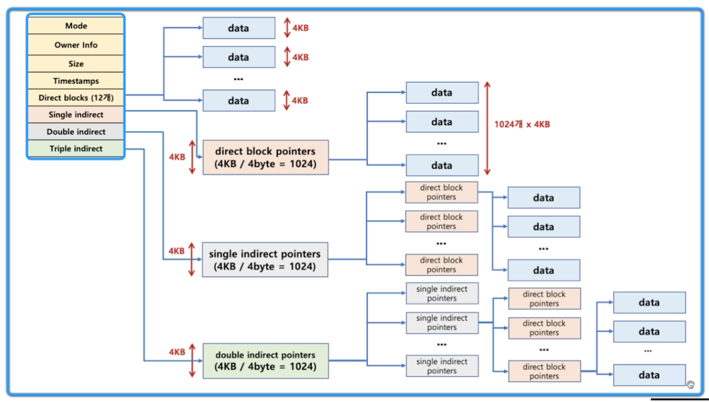 5. Direct blocks(12개) : 직접적으로 블록에 주소를 가리키는 데이터